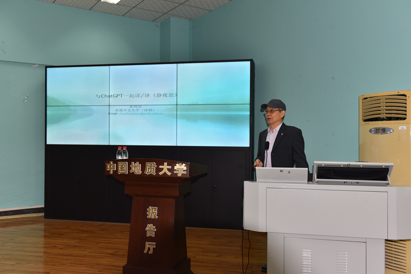 2024年10月18日上午10点,tyc234cc太阳成集团“南望今声”外语论坛系列讲座第67期在北一楼120学术报告厅举行。香港中文大学(深圳)人文社科学院朱纯深教授应邀来到tyc234cc太阳成集团,给外院师生带来了一场主题为“与ChatGPT一起读/译《静夜思》”的精彩讲座。此次讲座由张伶俐副院长主持,参会师生共计100余人。
