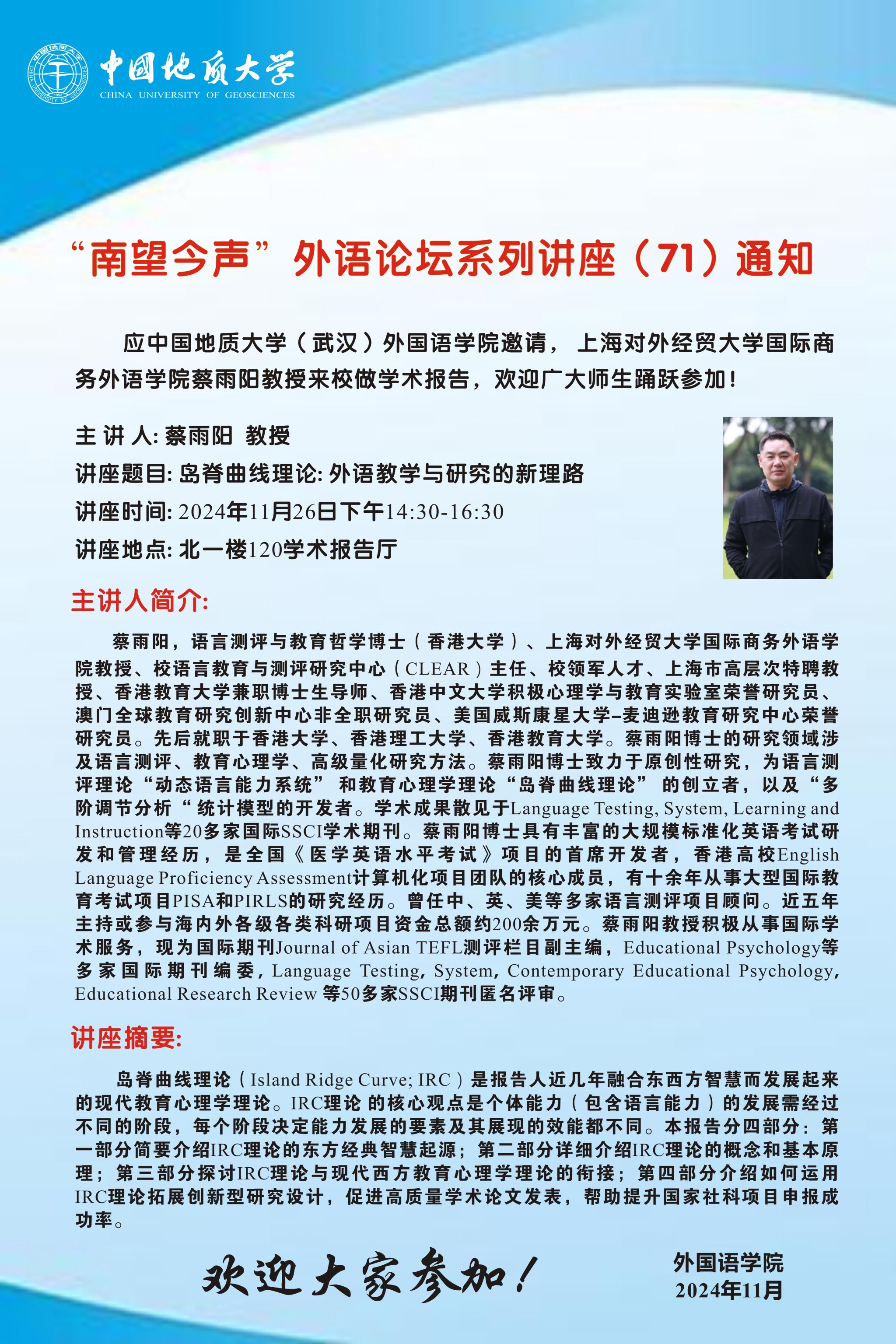 “南望今声”外语论坛系列讲座(71)通知