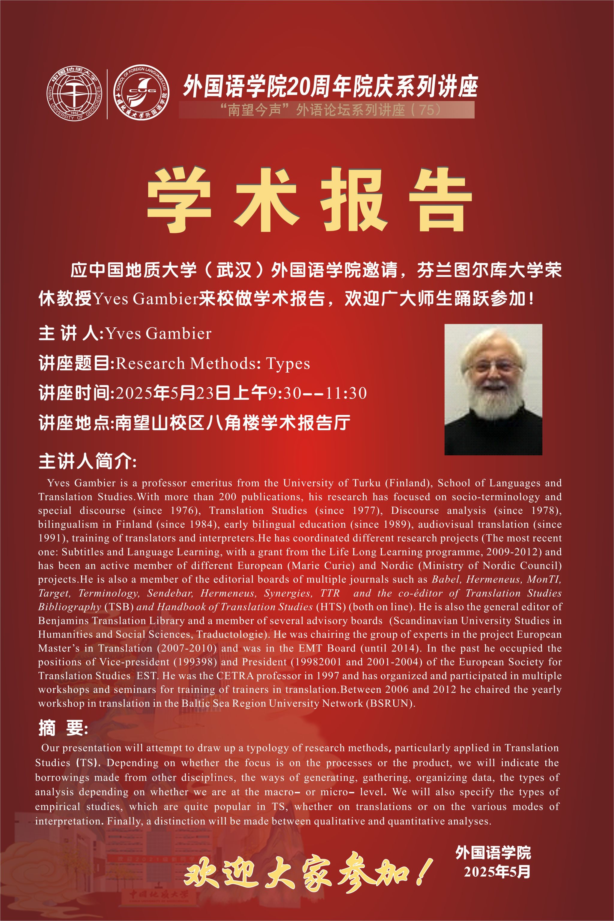 tyc234cc太阳成集团二十周年院庆暨“南望今声”外语论坛系列讲座第75期启幕