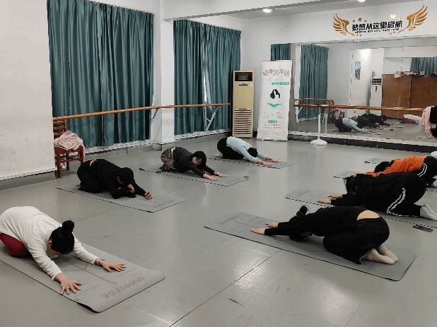 在瑜伽体式部分,老师依次教授了猫式伸展、下犬式、蛇式、摩天式、八体投地等经典瑜伽动作。从动作的起始姿势、发力要点到呼吸的配合,老师都一一细致讲解、耐心示范,并适当给予辅助,确保动作规范准确。