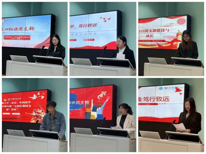 各团支书的展示逻辑清晰、内容丰富、亮点纷呈,从全方位呈现了各团支部的卓越建设成果与青春活力。团支书们紧扣时代脉搏设计主题,既凸显政治引领,又充满人文温度,为支部建设注入精神动能。“红旗领航向,奋斗正青春”彰显理想信念,“等枝桠,成繁花”呼应活动主旨,“点燃一盏灯,照亮一群人”展现集体成长愿景。