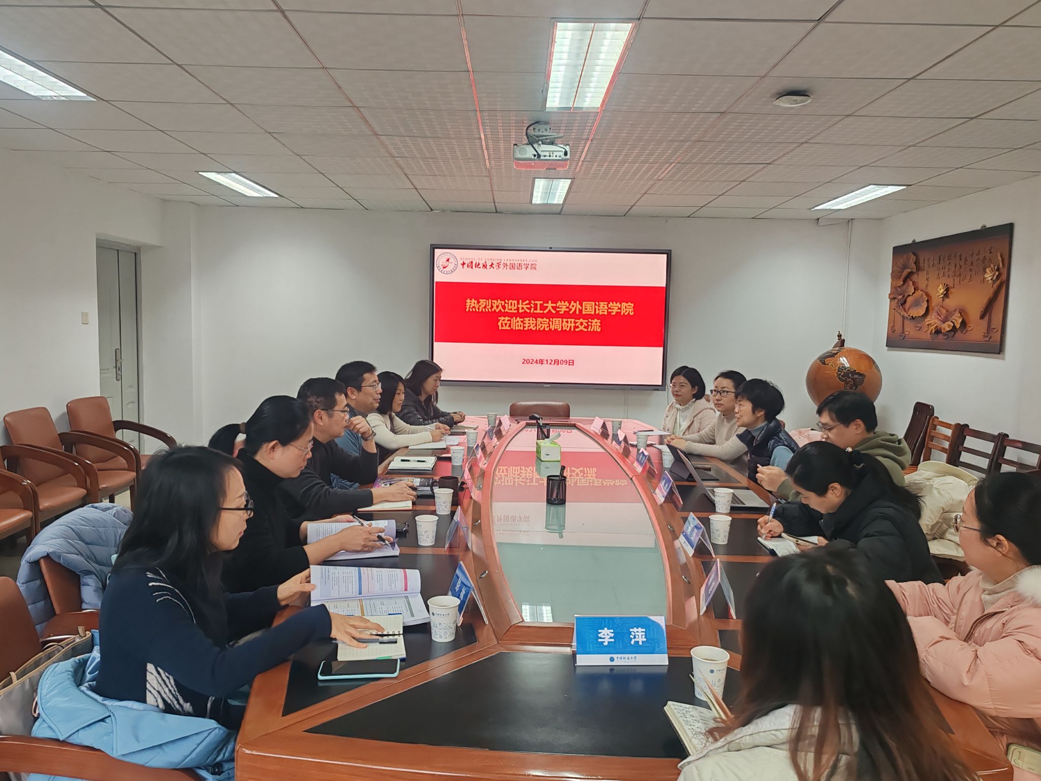 2024年12月09日上午,长江大学tyc234cc太阳成集团副院长徐芳等一行7人来到太阳成集团,就大学英语教学改革与发展思路、教学质量改进等问题展开调研。tyc234cc太阳成集团副院长周宏图等参加调研座谈。