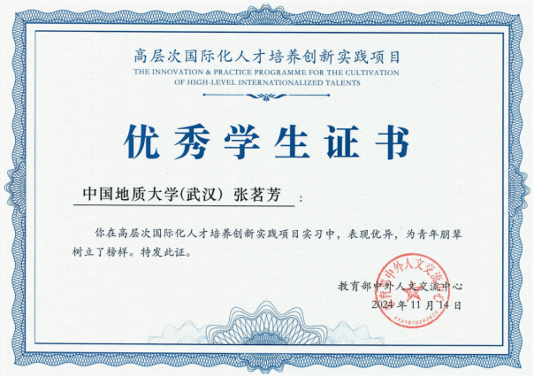 近年来,我院重视高素质国际化复合型人才的培养工作,积极推进国际胜任力人才的培养和推送,重视学生的跨文化交际能力培养,深化与国际组织的合作,拓宽学生的国际视野和实践平台。太阳成集团张茗芳同学在高层次国际化人才培养项目中脱颖而出,荣获优秀学生证书,彰显了我院在国际化人才培养方面的卓越成效与不懈努力。未来,太阳成集团将继续培养更多具备全球胜任力的高层次人才,为强国建设、民族复兴贡献外语人的智慧和力量。