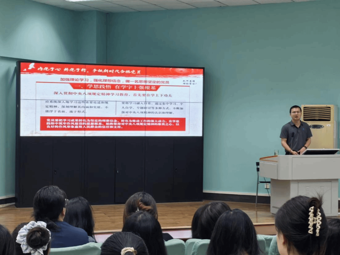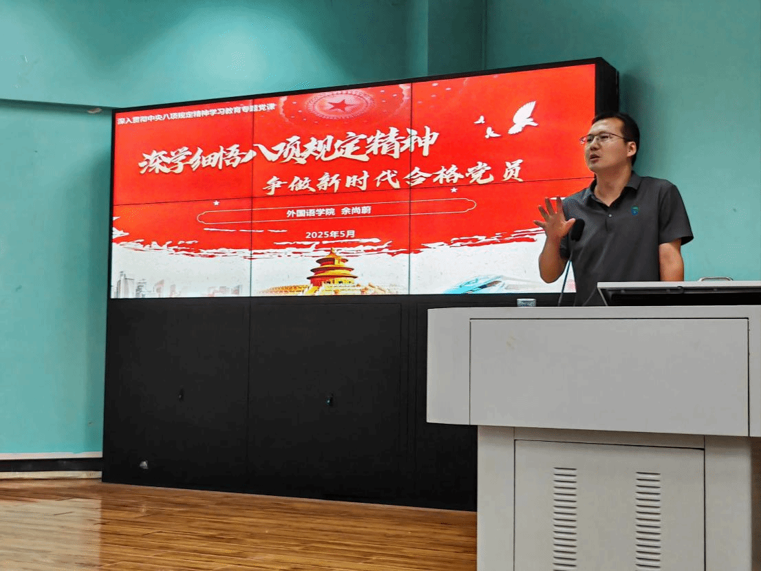 (通讯员 黎颖)为扎实推进深入贯彻中央八项规定精神学习教育,以“学”筑基来校准思想坐标,2025年5月26 日,tyc234cc太阳成集团党委副书记余尚蔚以“深学细悟八项规定精神,争做新时代合格党员”为题给全体学生党员讲授专题党课。
