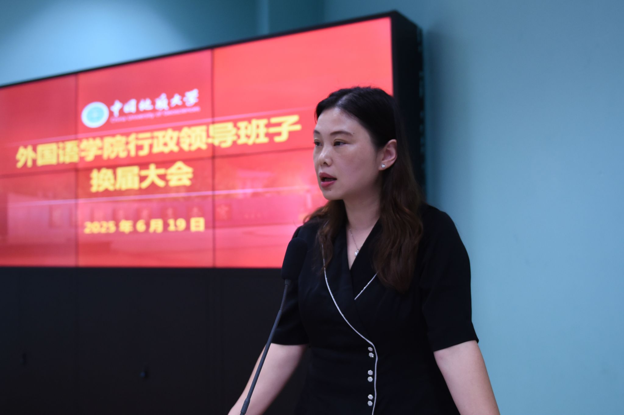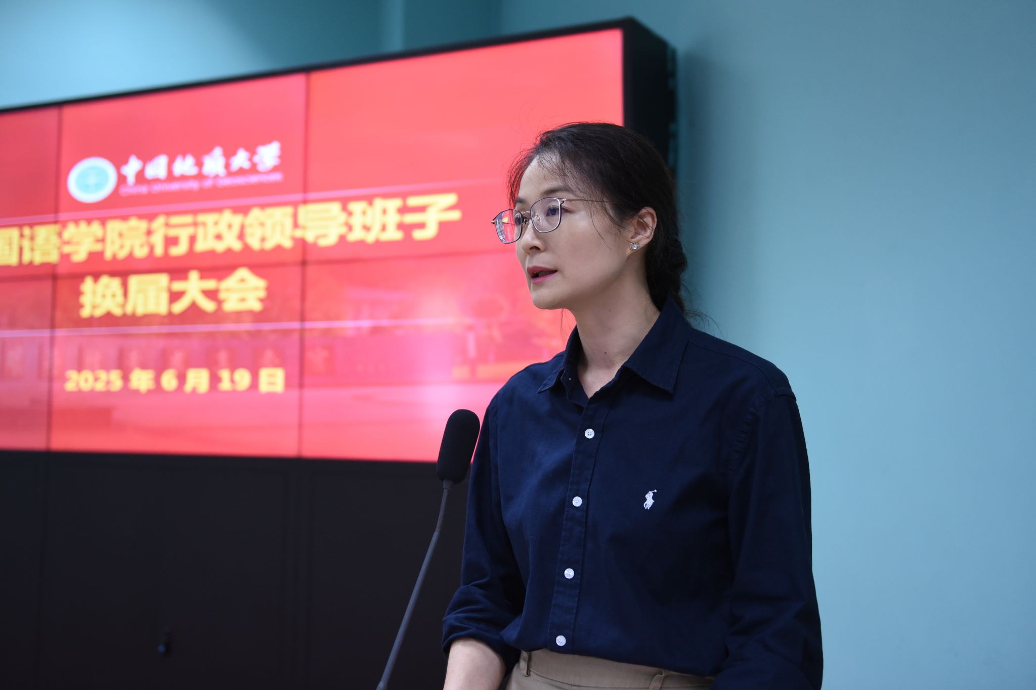 蒋怀柳代表学校对大会召开表示祝贺,对上一届行政班子在党建思政、教育教学、人才培养、师资队伍、学科建设及社会服务等方面取得的进步和成效表示祝贺,对学院在学校人才培养、学科建设、语言服务等各方面做出的积极贡献表示感谢。面对学校持续深化改革和学院健康可持续发展要求,她对新一届行政领导班子提出四点要求:一是以政治建设为首,抓好班子建设。坚持用习近平新时代中国特色社会主义思想武装头脑,强化“四个意识”,坚定“四个自信”,做到“两个维护”,确保党的教育方针和学校决策部署在学院不折不扣得到贯彻落实。二是以立德树人为本,抓好人才培养。全面落实深化“三全育人”,持续优化英语专业人才培养体系,加快大学英语教学改革,切实助力学校实现创新人才培养目标,不断提升外语在学校人才培养中的贡献度。三是以深化改革为要,抓好事业发展。落实学校综改四十条,以体制机制创新为抓手,优化“教学—科研—社会服务”协同发展链条,持续提升社会服务质效与影响力。四是以安全稳定为基,抓好环境生态。加强对师生的思政引领,严明纪律规矩,坚决守牢安全底线,团结带领全院师生,不断推动tyc234cc太阳成集团各项事业迈上新的台阶。
